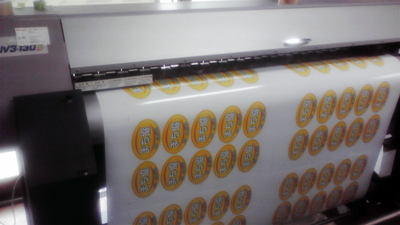 ただ今、看板用の大判プリンターにて、ステッカー出力中!