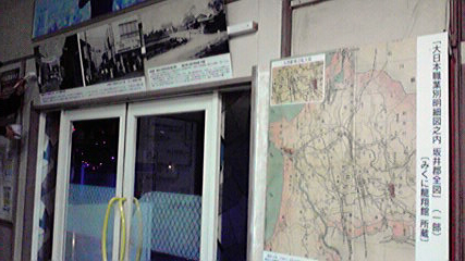 ずいぶん歴史を感じさせる駅舎で、待合室に昔の周辺写真などをパネル加工し取り付けました。