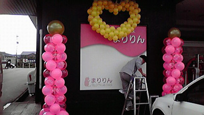 今日は丸岡町にてオープン予定の「まりりん」さんのサイン取付。