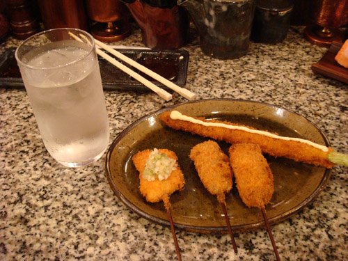 串カツに焼酎。