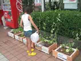 日曜日に、(社)日本青年会議所・北陸信越地区協議会・福井ブロック協議会(長くて恐縮です、これに続いて(社)三国・芦原・金津青年会議所〈MAKJC〉となります)が県内各地で開催した、グリーンカーテン事業に次男を連れて参加。