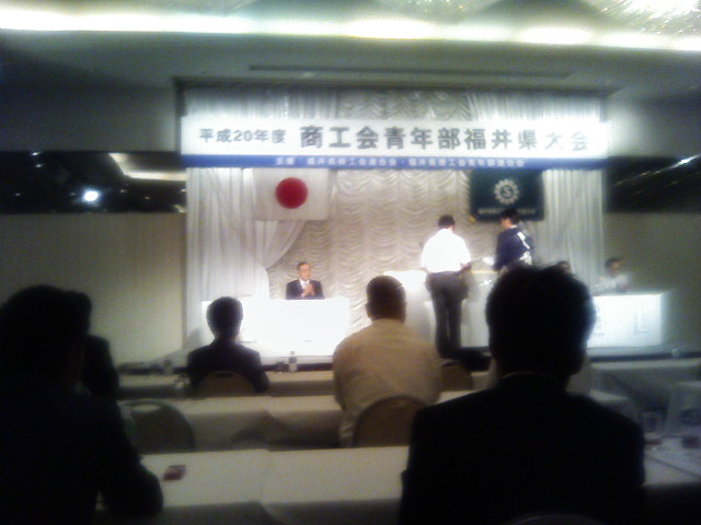 それから、これも昨日行われた、福井県商工会連合会青年部会員大会がワシントンホテルにて開催され、我が坂井市商工会青年部より、代表として吉川君が主張発表大会に出場。