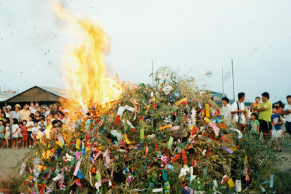 毎年、手法や開催場所は変わりますが、おおまかには各保育園・幼稚園その他の施設から笹飾りを回収します。各家庭で作られたものはイベント会場までお持ちいただきます。それを一か所に集めた後、イベントのフィナーレに盛大に燃やします。みんなの願いごとを書いた笹飾りが炎となって、天まで届き願い事が叶えば、という想いで毎年企画しております。