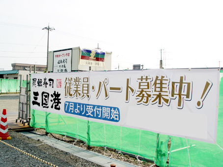 お得意さまでもあり、大先輩でもあるたけ庄様が、今秋オープン予定の新店舗工事現場に、社員募集の横断幕を設置してまいりました。